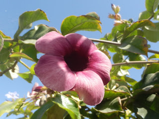 Apocynaceae, Hundsgiftgewächse, Allamanda blanchetii. Allgemeine Bezeichnung: Purpur Allamanda, Purple Allamanda.
