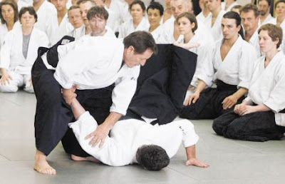Vor allem unter japanischen Aikidolehrern ist die Ansicht verbreitet,dass mehr ätherische Formen von Aikido besser für Älterepassen. Sie meinen, dass junge Ausübende lieber mit Kraftfülle und Schnelligkeit brillieren, weil das zu ihrem Alter gehört. Erst wenn das Alter die Gelenke steifer macht und die Bewegungen schrumpfen lässt, so soll man sich dem Aikido zuwenden, das so weich wie Luft ist, und erst wenn das Grab auf einen lauert, soll man zu dem Aikido übergehen, das die Leere zeigt – sofern man das kann.Es ist sicher richtig, dass junger Eifer es schwer hat, dasKraftvolle sein zu lassen, und schwer, so sanft wie ein Windhauch zu sein...