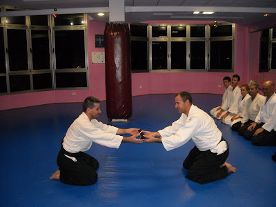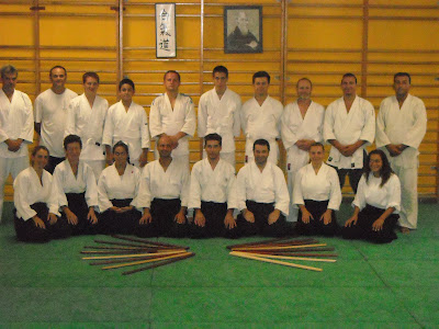 Letzten Samstag hatten wir eine angenehme Aikido Zusammenkunft mit Kollegen von verschiedenen Klubs. Unser Lehrer Manuel betonte ausdruecklich, dass unser Training entspannt aber mit kraeftiger Anwesenheit sein sollte und dass wir unseren Uke immer respektieren und auf ihn aufpassen sollten, Uke leiht uns seinen Koerper zum trainieren. Unser Kollege Tassos vom Club Aikitas aus Santa Cruz de Tenerife legte besonderen Wert auf dass wir unseren Mittelpunkt benutzen ohne Kraft,natuerlich ist Letzteres sehr fortgeschritten, dafuer braucht man mehrere Jahre regelmaessiges Training. Am Schluss wurden einheitliche Kriterien besprochen in Bezug auf Kurse, Versicherung, Pruefungen und jeder konnte Fragen stellen...