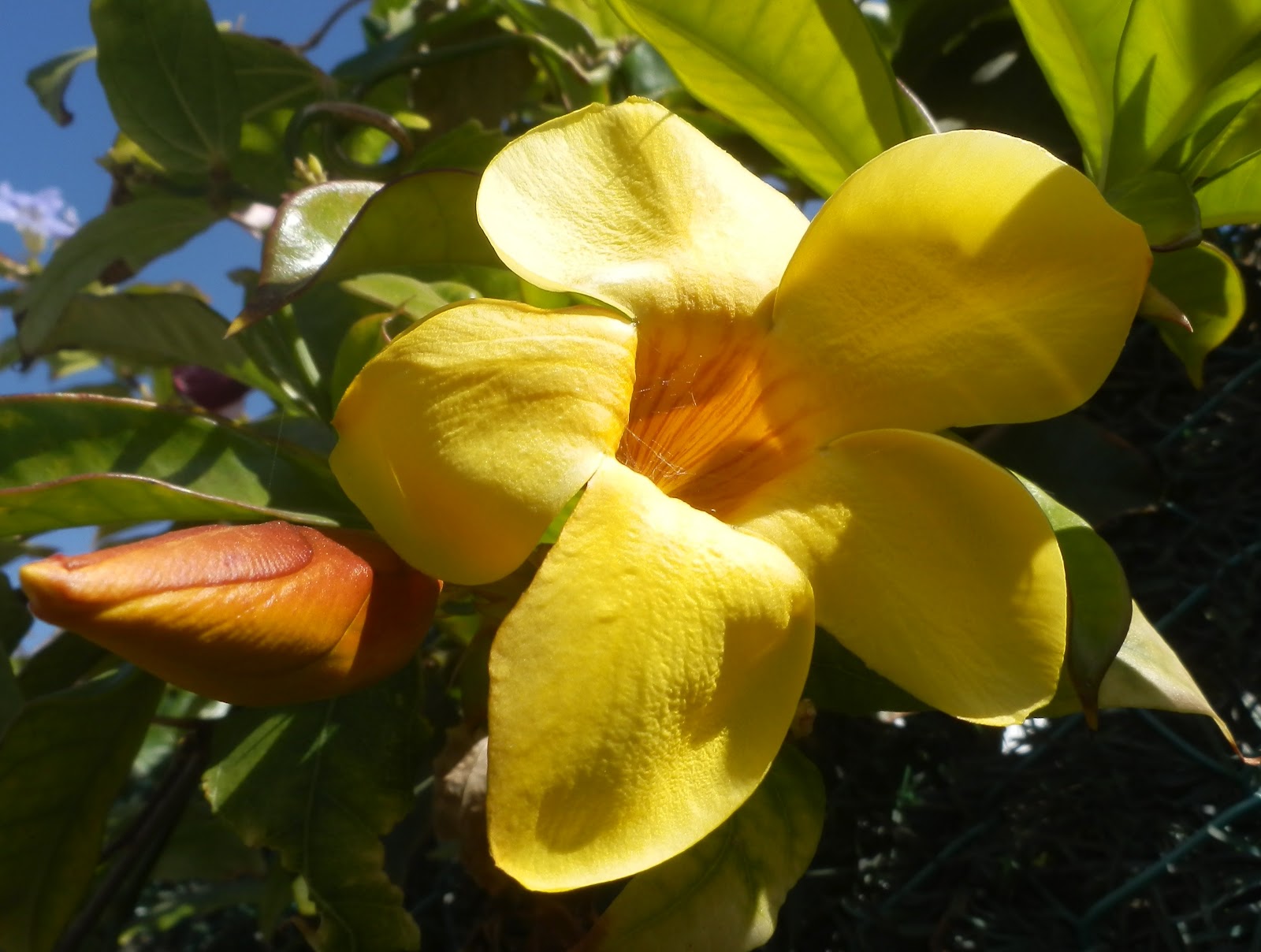Die Goldtrompete wächst als ein bis ungefähr 4 m hoher Kletterstrauch oder als Liane und trägt schöne gelbe Trichterblüten. Die Pflanze führt einen weißen, giftigen Milchsaft.