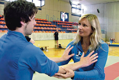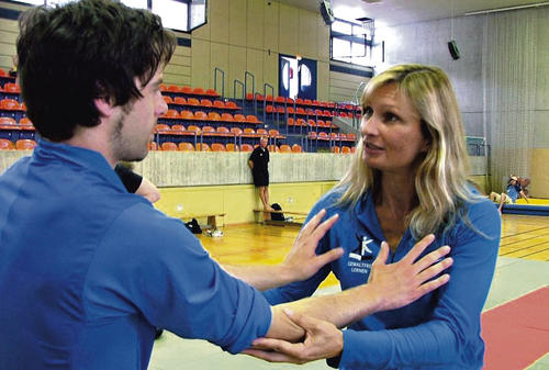 (rödi) „Nein, ich will das nicht!“ Lautstark gibt die Sportstudentin ihrem Gegenüber zu verstehen, dass er sie aus dem Schwitzkasten lassen soll. Doch der denkt nicht dran. Was tun? Szenen wie diese spielen sich täglich auf deutschen Schulhöfen ab. Nun steckten die Lehramtsstudenten, die später selbst einmal als Schlichter auftreten werden, selbst in solch einer misslichen Lage. Und das mit voller Absicht: Beim Tag des Schulsports gegen Gewalt im Uni-Sportzentrum am Judenbühlweg lernten sie Handlungsanweisungen für derartige Konflikte.Sich aus einem Schwitzkasten zu befreien – für schwache Schüler ein Ding der Unmöglichkeit, für Sibylle Wanders vom Projekt „Gewaltfrei lernen“ eine Frage der Technik...