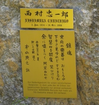 Das war Suzuki Goro (damals 5 dan), der posthum zum 9 dan ernannt wurde. Im System der Nihon kiin wird ein Spieler nach der Beendigung seiner offiziellen Pro Karriere um 1 dan befördert, dann noch einmal nach seinem Tod um 1 dan. Ich war zu meiner aktiven Zeit 5 dan, nun bin ich 6 dan. Wenn ihr also einmal lest „Nakayama Noriyuki 7 dan“, dann bin ich gestorben. (lacht)