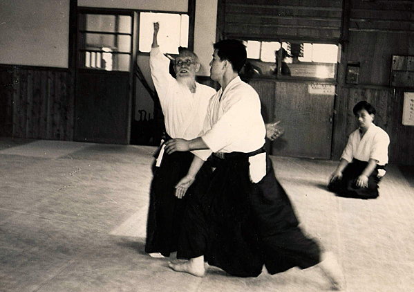 „Wenn du kein Judo, sondern echtes Budo machen willst, musst du dem letzten der Budoka begegnen.“ Es war Morihei Ueshiba, und ich hatte noch nie von ihm gehört. Herr Kaburagi arrangierte dann mit ihm ein Treffen, bei dem ich ihm vorgestellt wurde. O Sensei, Kisshomaru Sensei, Tohei Sensei, Herr Kaburagi, Muko, die Tochter von Osawa Sensei, die später meinen älteren Bruder heiratete, und ich waren dabei.