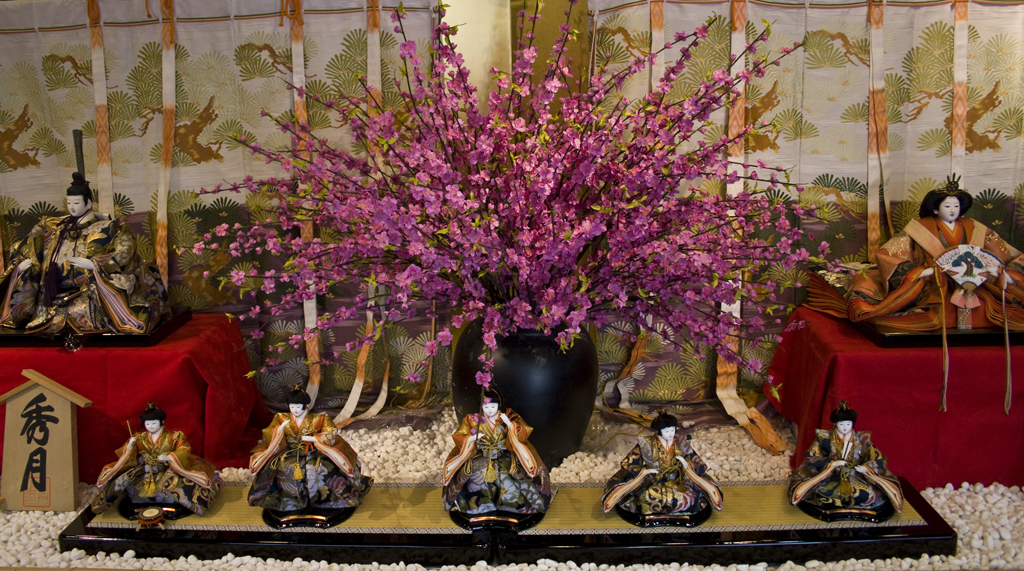In der traditionellen japanischen Poesie werden Pfirsichblüten häufig mit der frischen Schönheit der Mädchen und jungen Frauen verbunden. Im März werden Sprays von Pfirsichblüten in Vasen neben Hina-ningyo Puppen Ausstellungen aufgestellt, um sie zu begleiten, da sie zu dieser Zeit des Jahres ausgestellt werden. Diese Pfirsich Sprays sind von speziellen Sorten geschnitten, die speziell für diesen Zweck entwickelt wurden. Sie blühen reichlich, aber haben keine Frucht.