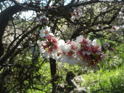 Laut Wikipedia ist der Mandelbaum das Symbol der dauerhaften Liebe und Freundschaft und blüht genau zu diesem Zeitpunkt, wenn der Valentinstag gefeiert wird. Obwohl aufgrund des Klimawandels sie etwas früher blühen, wie wir auf den Fotos von meinem letzten Spaziergang Ende Januar sehen können.