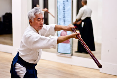Masami Shioda (60) hält beidhändig einen großen in Leder gewickelten Bambusstock. Er steht Vernon Church gegenüber, einem 48-jährigen leitenden Angestellten aus der Internet-Branche, der ebenfalls einen solchen Bambusstock in den Händen hält. Die Stöcke treffen sich, während der Boden bei jedem Treffer und jedem Ausfallschritt bebt, da sie bei jedem Schlag gleichzeitig auf den Boden stampfen.